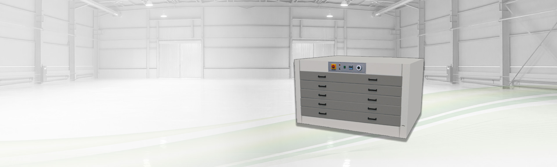 Drying cabinetfor horizontal dryingof printing frames For careful drying of screens.BELTRON screen drying cabinets for horicontal screen drying, in solid steel construction with 5 drawers,